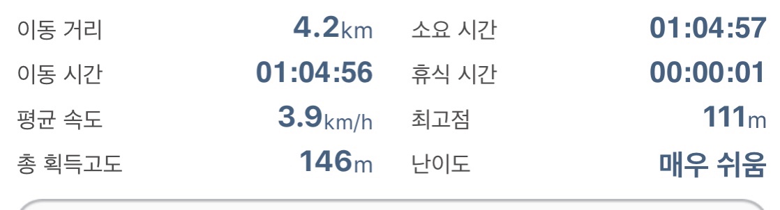 휴식시간 포함해서 약 1시간 정도의 둘레길 코스