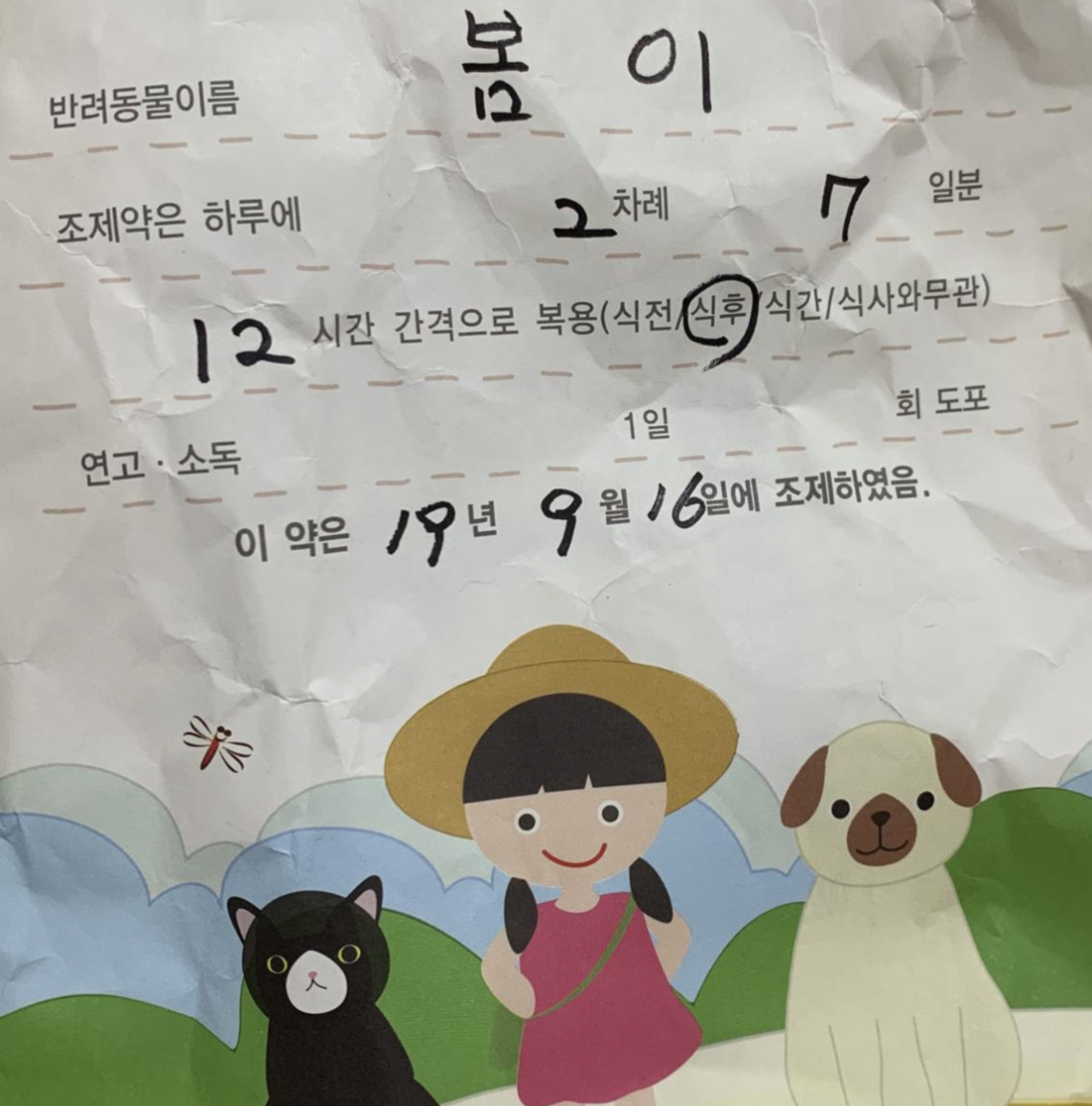 약은 총 7일 치, 하루 2번 복용하는 약